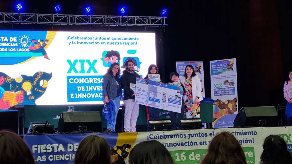 El primer lugar en la categoría educación básica alcanzaron estudiantes de nuestro Colegio que participaron en el XIX Congreso Regional de Innovación e Investigación Escolar, que organizó el Proyecto Asociativo Regional PAR Explora Los Lagos del Ministerio de Ciencia, Tecnología, Conocimiento e Innovación (CTCI) y la Universidad Austral de Chile Sede Puerto Montt, durante los días 15 y 16 de noviembre en la capital regional.