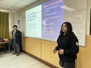 Hace unas semanas se hizo esta misma charla, pero en esa oportunidad fue con la presencia de todos los alumnos en el ex hall básica, por esta razón es que ahora se ha determinando hacerlo en cada curso, donde también ha figurado la presencia no sólo de los profesores sino también de estudiantes que están cursando cuarto medio de Administración, Servicios de Turismo, Programación y Gastronomía.