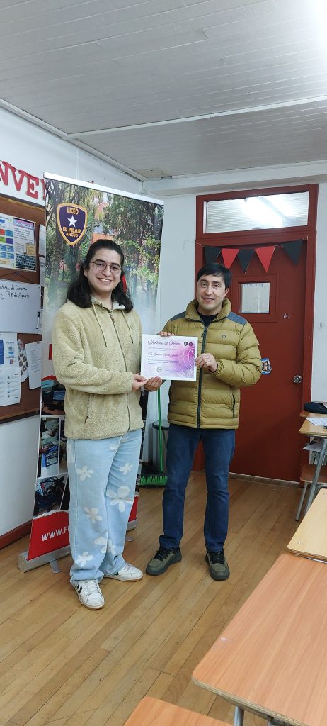 La idea era que pudieran contar su experiencia después de culminar su etapa en nuestro Liceo. Así se contó con la presencia de Tulio Barría Águila (egresado el año 2023) y Tomás Quintana Ramos (egresado el año pasado), quienes fueron relatando sus vivencias en cuanto a sus prácticas profesionales, vida universitaria y empleabilidad.