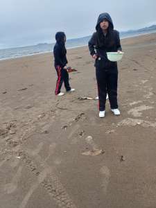 Un grupo de estudiantes del segundo ciclo del Colegio El Pilar, pertenecientes al grupo de científicos del taller forjadores ambientales, se dirigieron durante este lunes 4 de agosto hasta la playa Lechagua de Ancud.