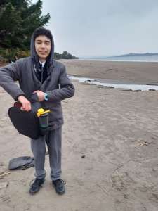 Alumnos del segundo ciclo de educación básica estuvieron tomando muestras desde el balneario Lechagua de Ancud.