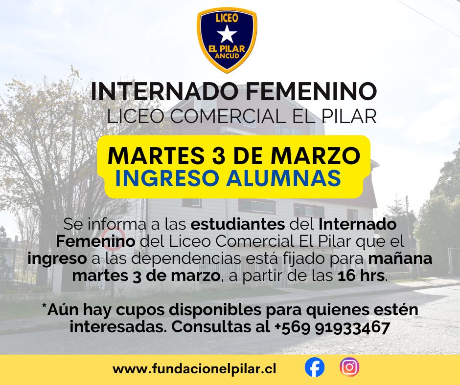 Asimismo, cabe indicar que aún quedan cupos disponibles para este 2026, por eso frente a dudas y consultas llamar al +569 9193 3467 con la Sra Amalia Felmer, encargada del Internado.