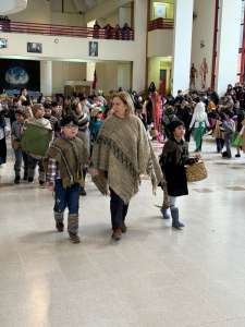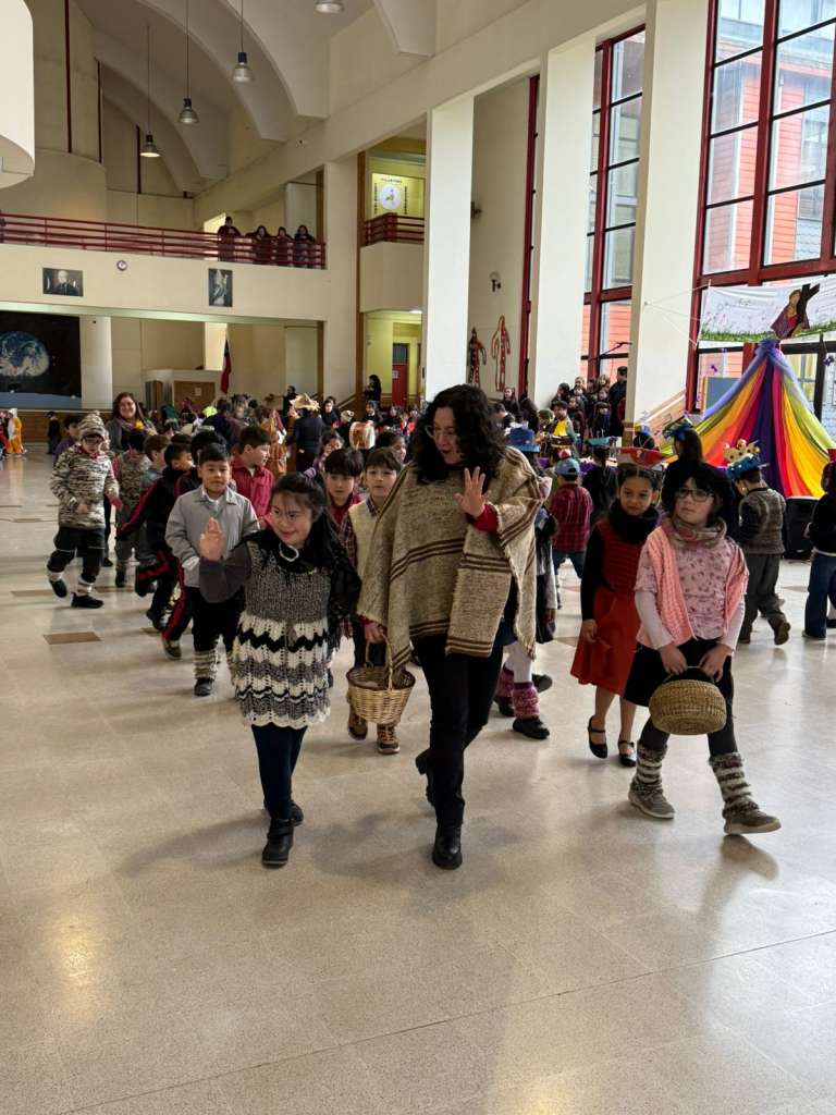 Por esta razón los niveles de Pre básica y primer ciclo vinieron vestidos especialmente para ser parte de un pasacalles, el cual se efectuó en el hall principal del establecimiento y fue el lugar donde se pudieron ver llamativos atuendos inspirados en la cultura chilota.